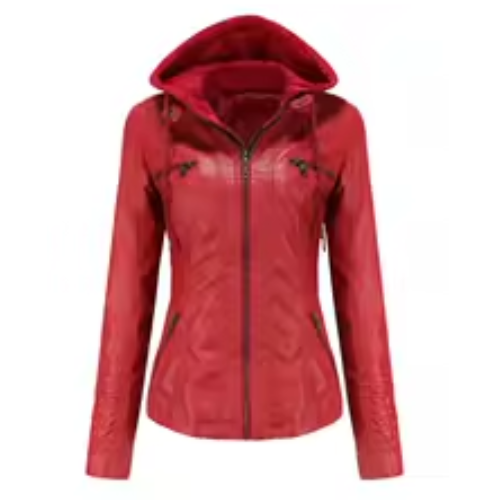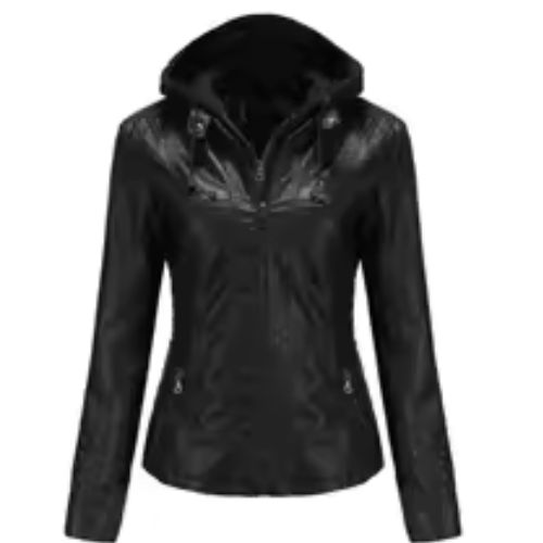 Made from high-quality washed PU leather, this jacket features a soft texture, durable finish, and a refined leather appearance. The hooded design adds a contemporary touch, while the clean stitching and structured shape create a flattering silhouette.
